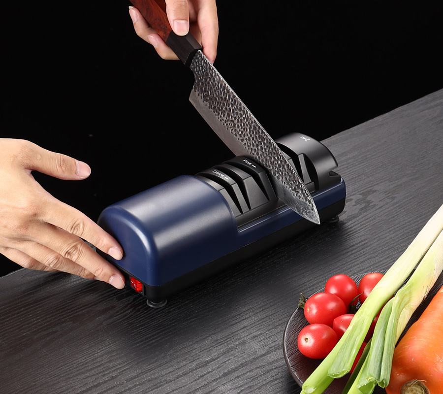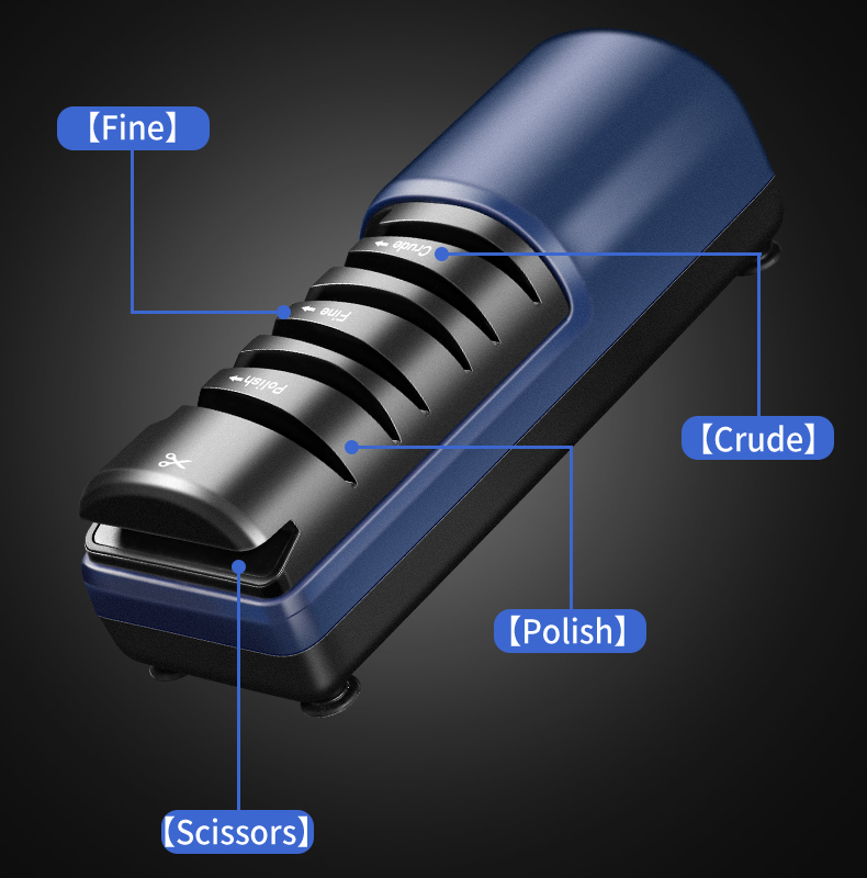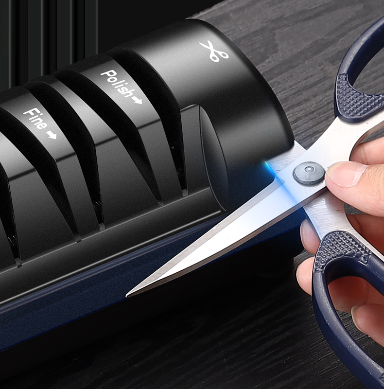 multi-stage sharpening! This blue electric tool hones knives and scissors quickly—sharp blades, easy use, no fuss. Elevate your kitchen prep, grab yours now!